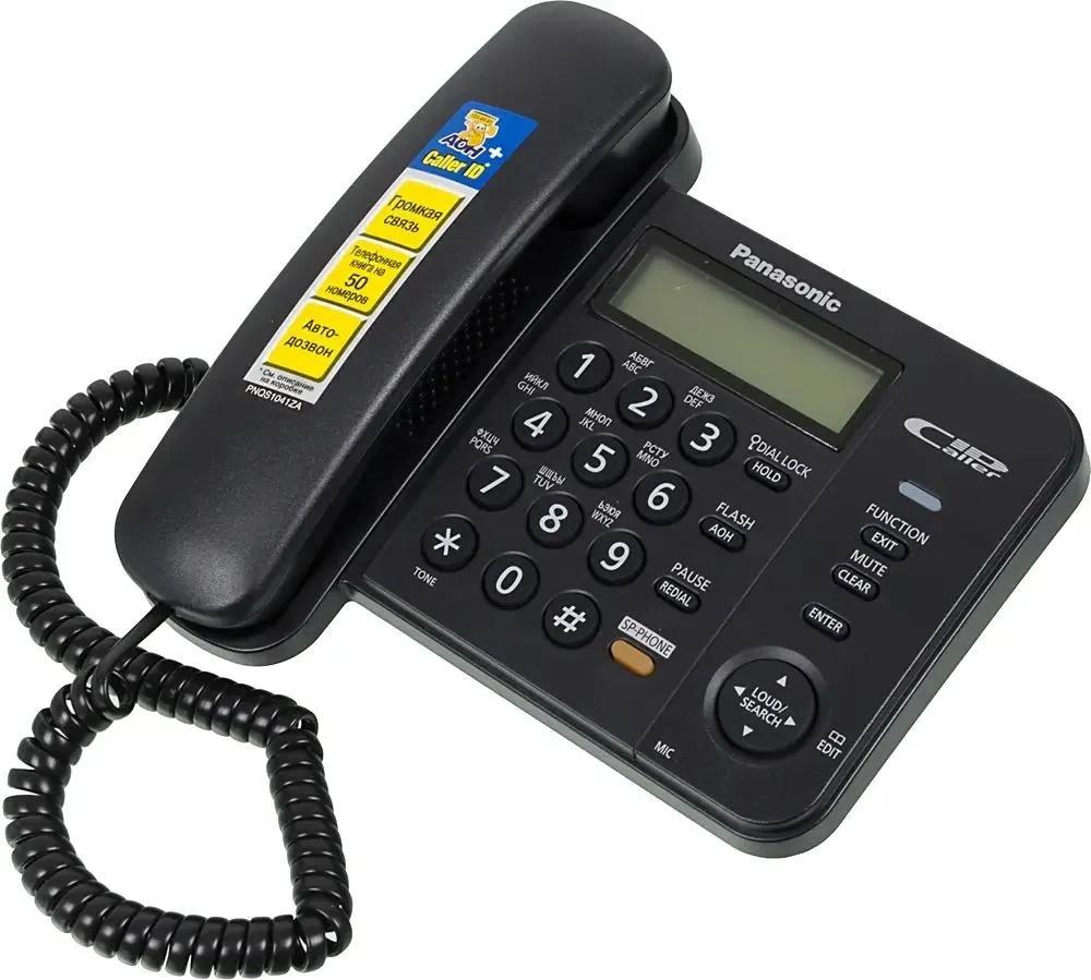 Телефон Panasonic KX-TS2358RUB, черный АОН, Caller ID, ЖКД, блокировка набора, выключение микрофона, кнопка 'пауза'