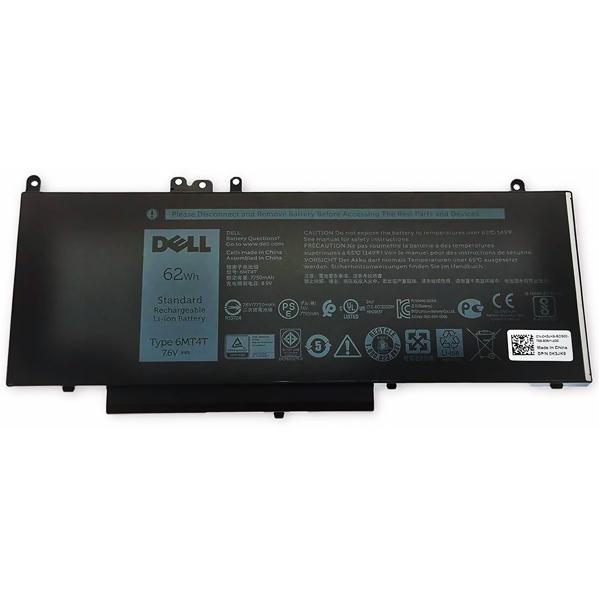 Аккумулятор Dell 6MT4T, 7.6 В, 62 Втч, используется при замене в ноутбуках Dell Latitude E5450, E5550 и E5570, взаимозаменяем с WTG3T, 7V69Y