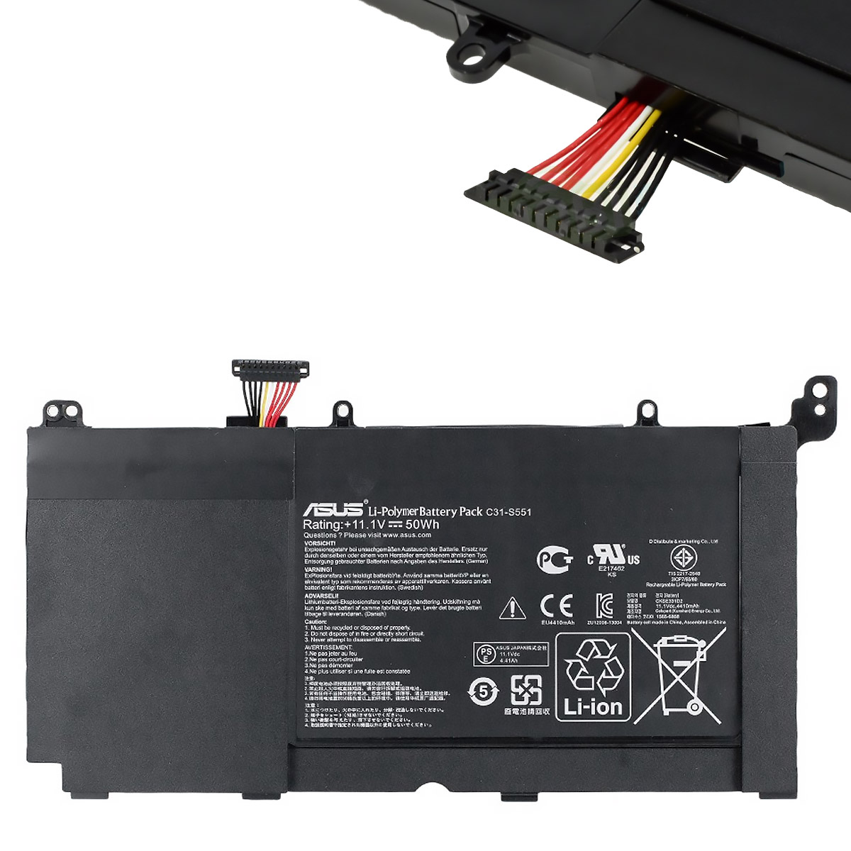 Аккумулятор Asus B31N1336, 11.4 В, 48 Втч, используется для замены в ноутбуках Asus VivoBook S551, R553LN, R553L и VivoBook S551LN-1A, чёрная