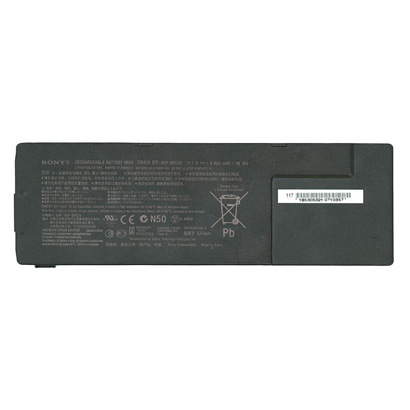 Аккумулятор Sony VGP-BPS24, 11.1 В, 48,84 Втч (4400 мАч), используется для замены в ноутбуках Sony VPC-SA, VPC-SB, VPC-SE, VPC-SD, SV-S, чёрный