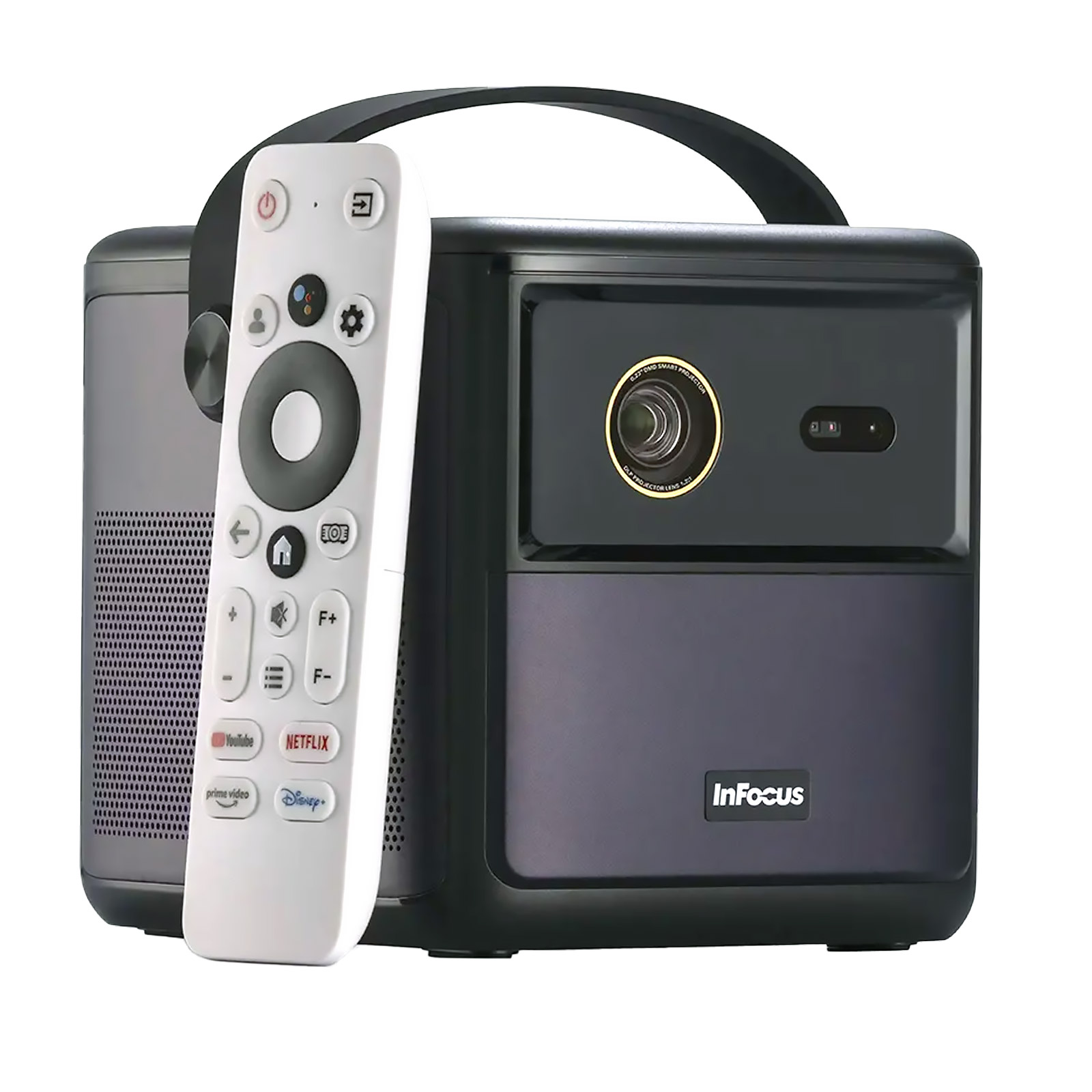 Смарт-проектор IN3018SL Crusader Master серии Quantum LED Crusader Master от InFocus — современное домашнее решение на светодиодной платформе с операционной системой Google TV. Разрешение Full HD (1920×1080), встроенный Wi-Fi и Bluetooth открывают доступ к стриминговым сервисам Netflix, YouTube и Prime Video без внешних устройств, а автоматическая фокусировка и коррекция трапеции упрощают первоначальную настройку.