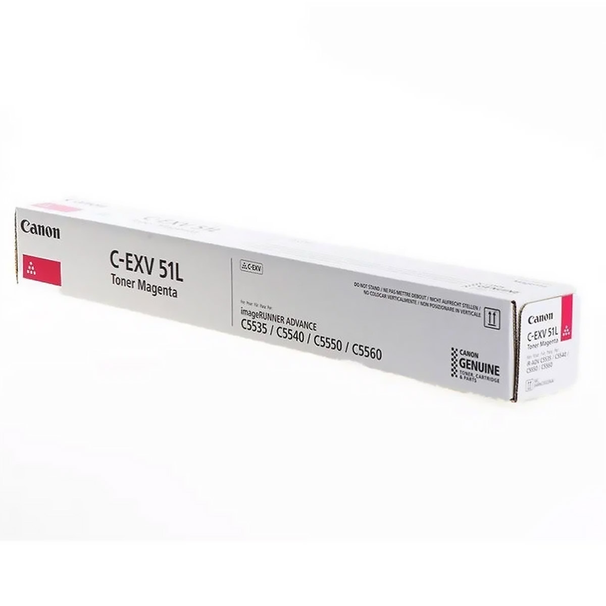 Картридж Canon C-EXV51L M содержит тонер пурпурный цвета. Для полноценной цветной печати требуется установка всех цветных картриджей (черный, голубой, пурпурный, желтый). Данный картридж отвечает за воспроизведение пурпурный компонента цветного изображения.