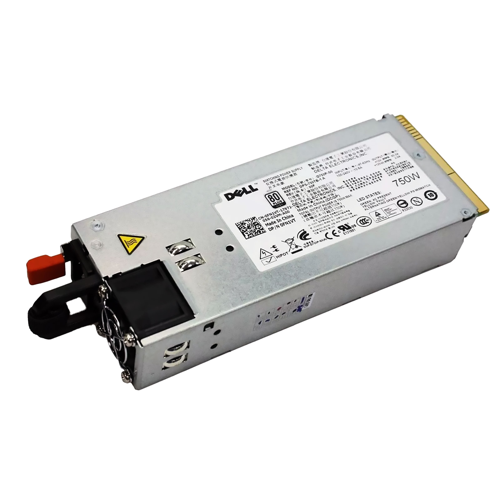 Серверный блок питания G24H2 от Dell — надёжный источник питания класса 80 PLUS Gold мощностью 750W, разработанный для применения в корпоративных вычислительных инфраструктурах. Модуль G24H2 поставляется в горячезаменяемом исполнении, что гарантирует бесперебойную работу серверного парка без плановых остановок на обслуживание.