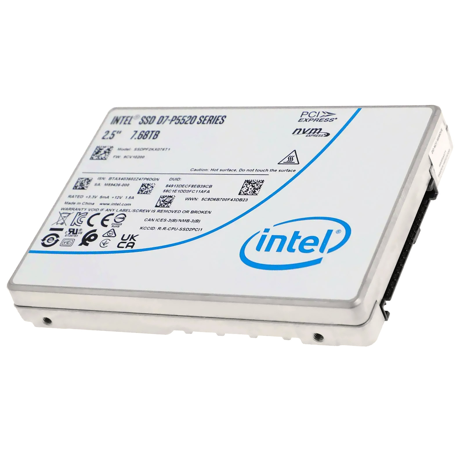 Твердотельный накопитель/ Intel SSD D7-P5520 Series, 7.68TB, U.2(2.5" 15mm), NVMe, PCIe 4.0 x4, TLC, R/W 7100/4200MB/s, IOPs 1 100 000/220 000, TBW 14000, DWPD 1 (12 мес.) — твердотельный накопитель емкостью 7,68 ТБ с интерфейсом PCIe 4.0 x4 NVMe форм-фактора 2.5" U.2 15 мм. Модель ориентирована для серверов и СХД, где важны стабильный доступ к данным, предсказуемая производительность и контролируемая надежность хранения. Твердотельная архитектура снижает задержки доступа и ускоряет операции чтения и записи по сравнению с традиционными жесткими дисками. Используется память типа 3D TLC NAND, ориентированная на корпоративный класс и постоянную круглосуточную нагрузку. Накопитель удобно использовать при расширении емкости серверов, модернизации массивов хранения, разделении рабочих нагрузок и построении отказоустойчивых конфигураций. Стандартный форм-фактор и интерфейс упрощают ин...