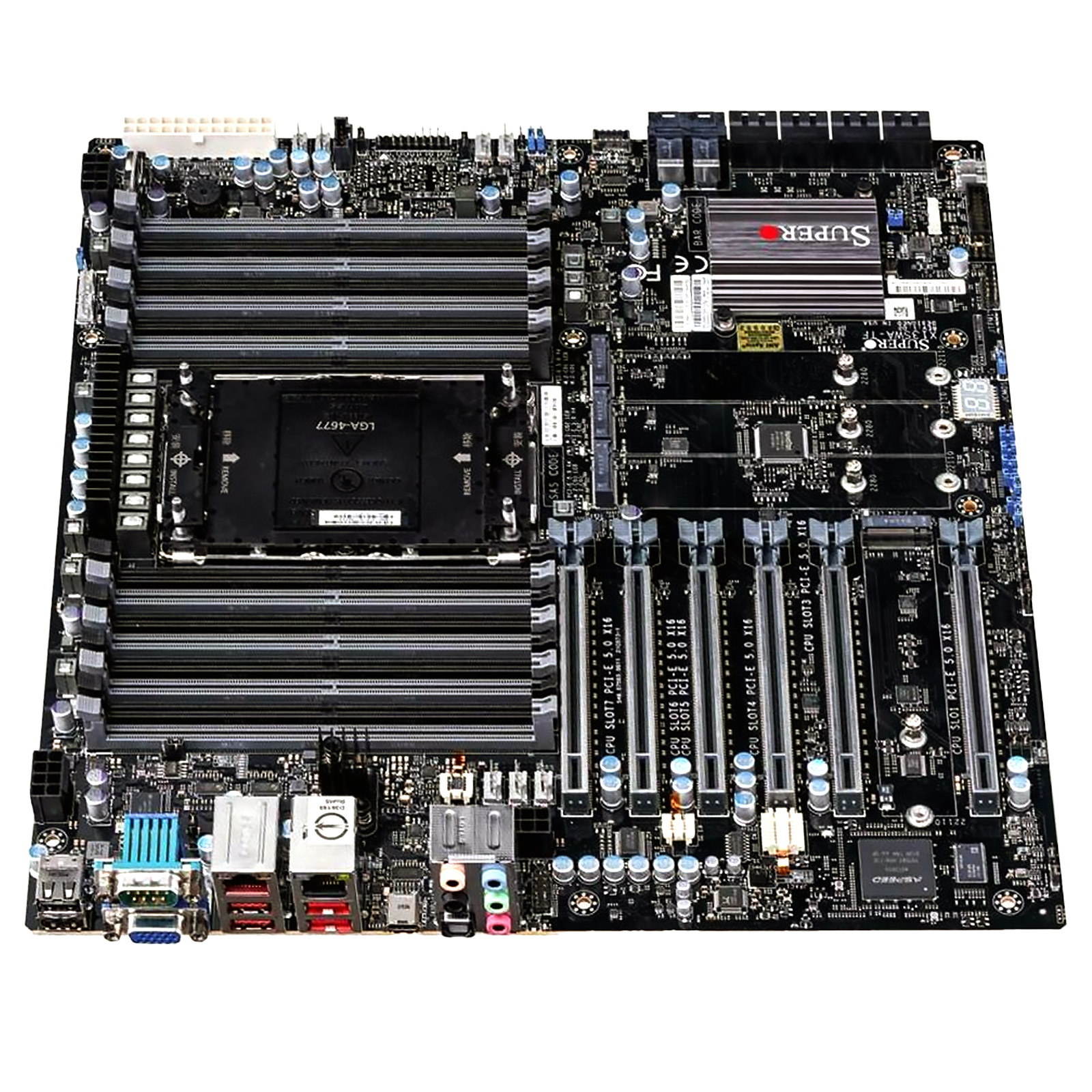 Сокет LGA4677, чипсет Intel W790, форм-фактор ATX. Поддержка 8 модулей DDR5 памяти (макс. 2048 ГБ), 8 портов SATA.