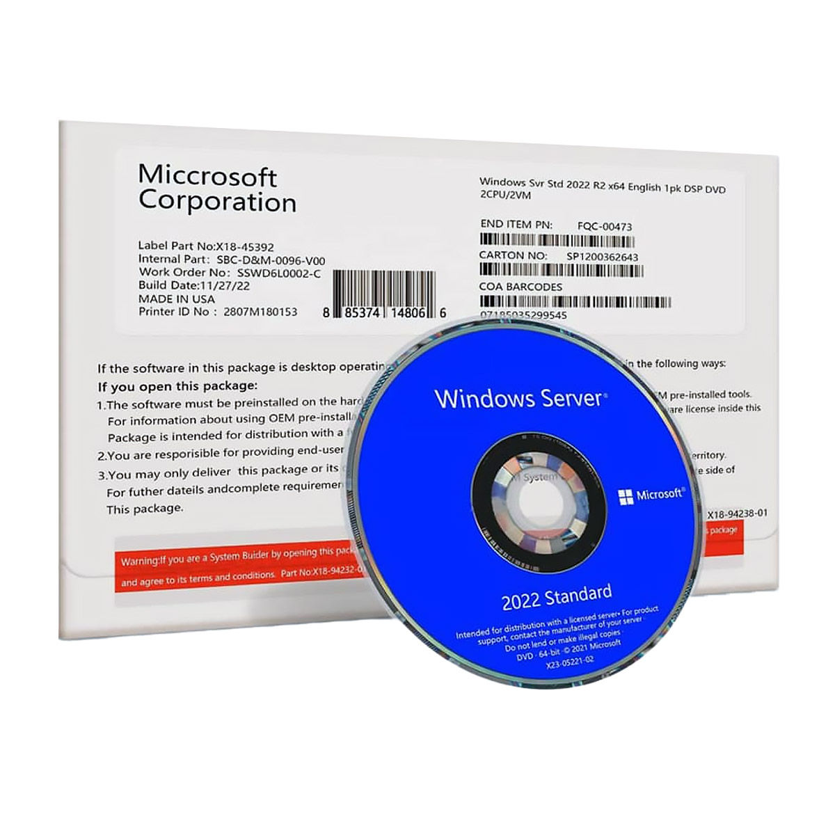 Программное обеспечение Microsoft P73-08328 Windows Svr Std 2022 64Bit English 1pk DSP OEI DVD 16 Core