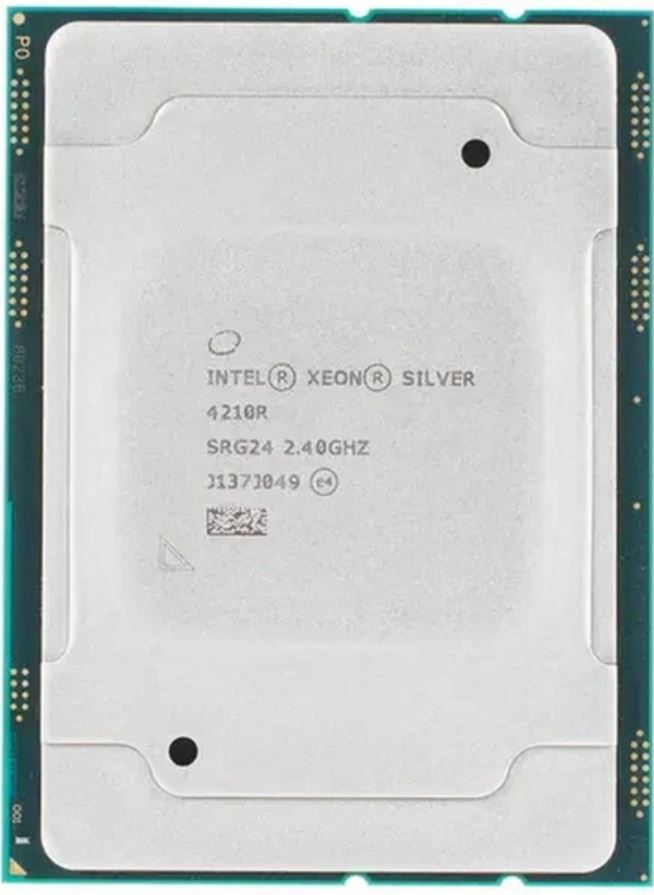 Серверный процессор Intel Xeon Silver 4210R P19246-001 частота 2.4GHz, 10 ядер/20 потоков, тепловыделение 100 Вт, сокет LGA 3647, поддерживает оперативную память стандарта PC4-19200 (DDR4 2400 МГц) до 1 Тб