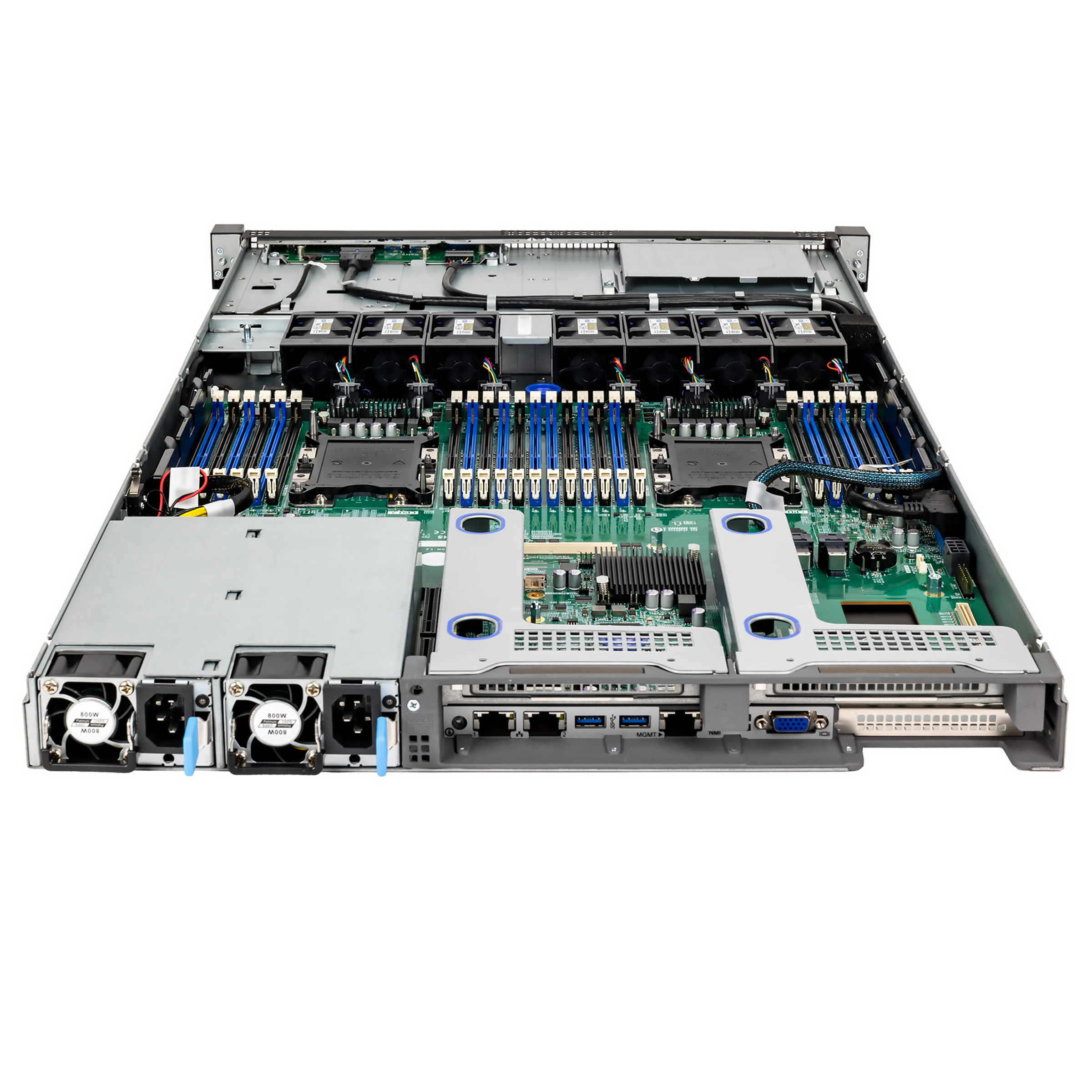 Серверная платформа HIPER R2-T122410-08 Server R2 Advanced - высота 1U, C621, два сокета LGA3647 (Socket-P) под процессоры Xeon SP поколений 1 и 2/205Вт TDP, 24 слота для оперативной памяти DIMM, 10 отсеков 2.5'', 2xGbE, OCP2.0, два блока питания CRPS по 800 Вт