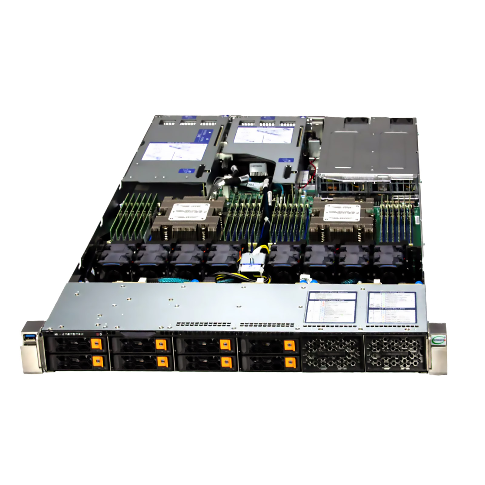 - Высокая надёжность: 2 блока питания 1200W горячей замены; вентиляторы 8 шт. с резервированием.