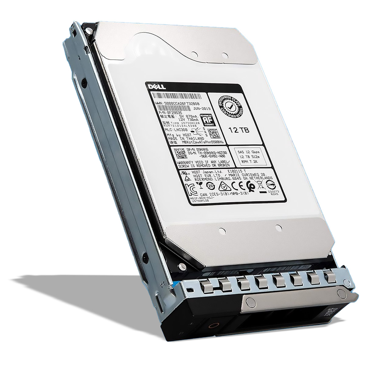 - Серверы Dell PowerEdge: Совместим с серверными платформами PowerEdge, поддерживающими 3.5"-формат и интерфейс SAS-12Gbps.