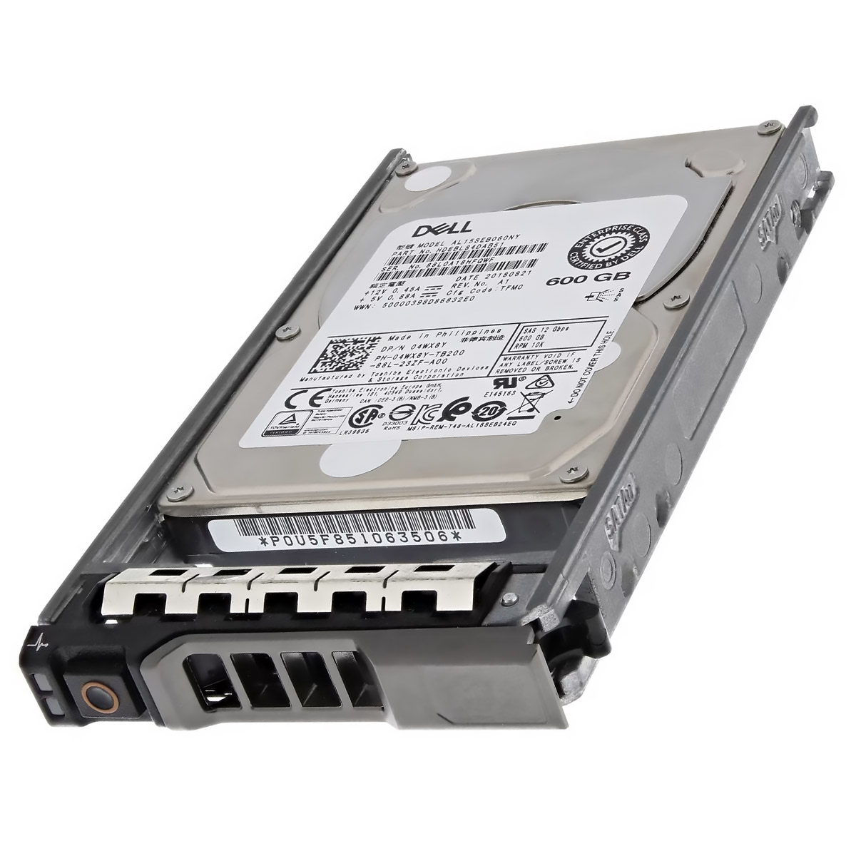 Жесткий диск Dell 4WX8Y с объёмом 600 Гб, скоростью вращения 10000 об/мин, интерфейсом подключения SAS 12 Гбит/сек, форм-фактором 2.5'' (SFF), может устанавливаться в сервера Dell PowerEdge серий R и T