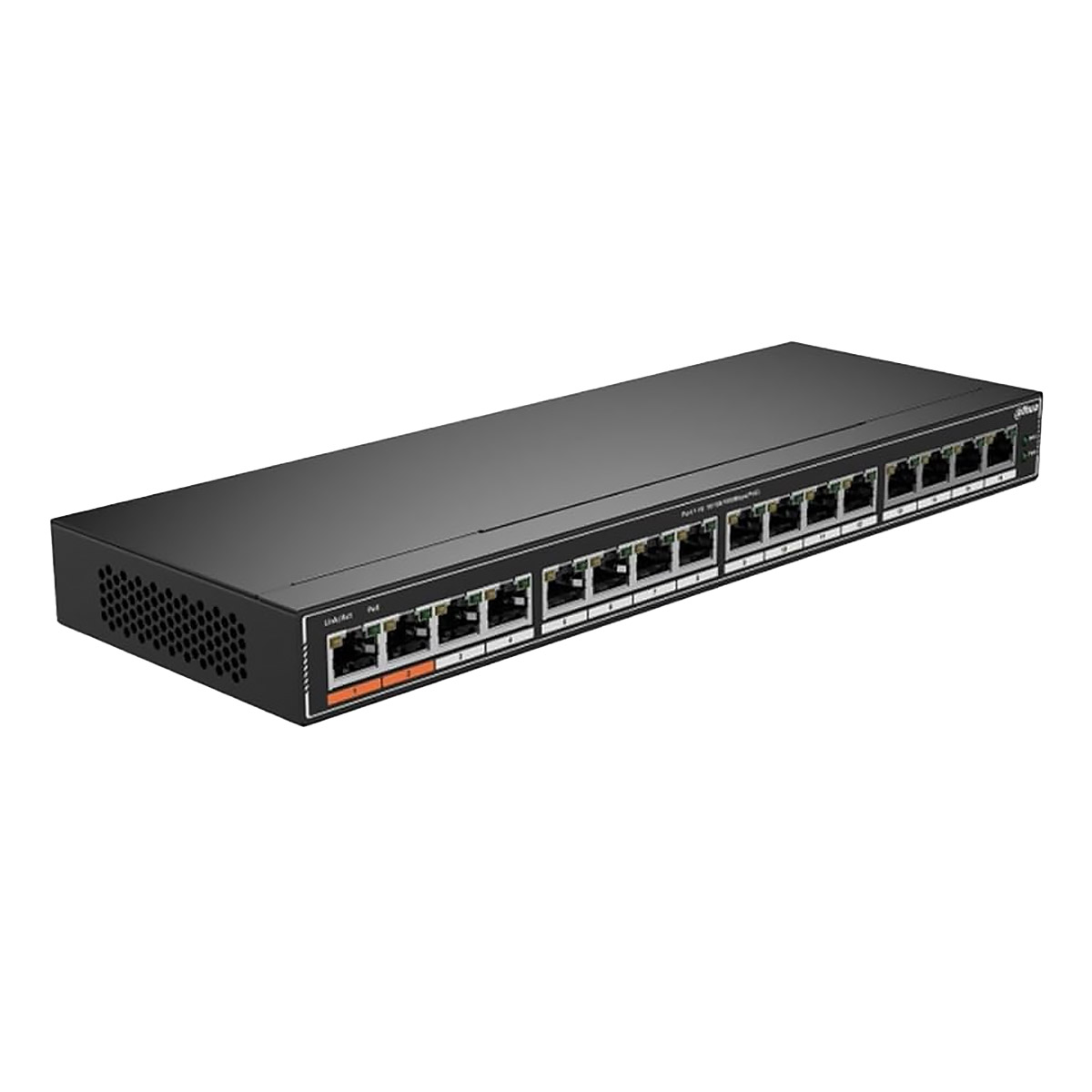 Неуправляемый коммутатор Dahua DH-SG1016P 16-портовый гигабитный c PoE, 16xRJ45 1Gb, суммарно 190Вт, коммутация 32 Гбит/с, MAC-таблица 8К