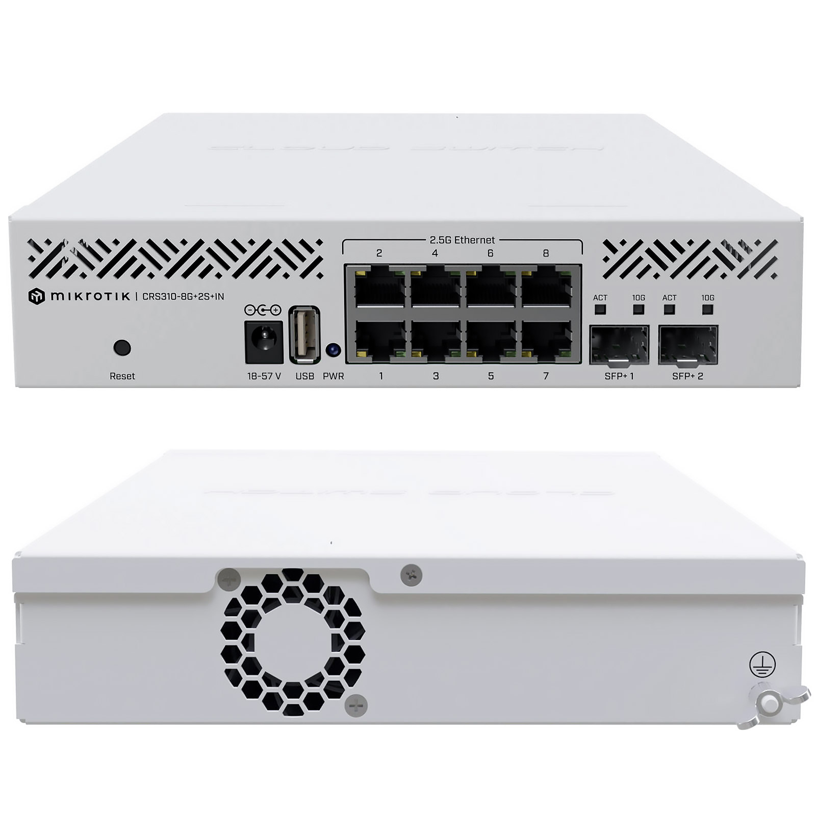 Модель имеет 8 портов 2.5G Ethernet и 2 порта SFP+. Part Number: CRS310-8G+2S+IN.